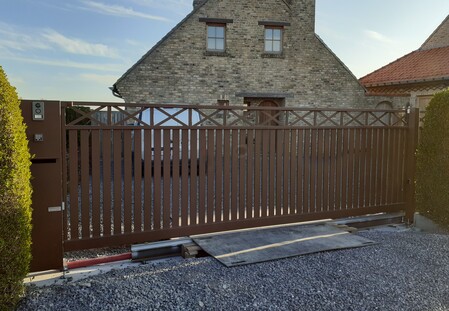 Schuifpoort op rail - Hekfabriek Veurne - hekwerk en poorten